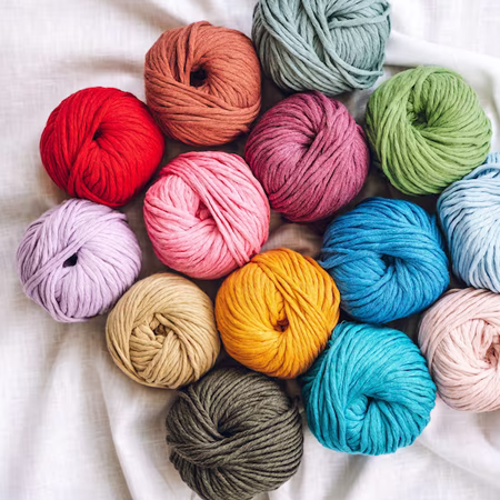 Yarn is a continuous strand of fibers that can be spun into textile or sewing thread, used for knitting, weaving, crocheting, and other forms of textile production.Fiber refers to the raw material used to produce yarn and fabric. Fibers can be natural or synthetic and are categorized based on their origin and composition.